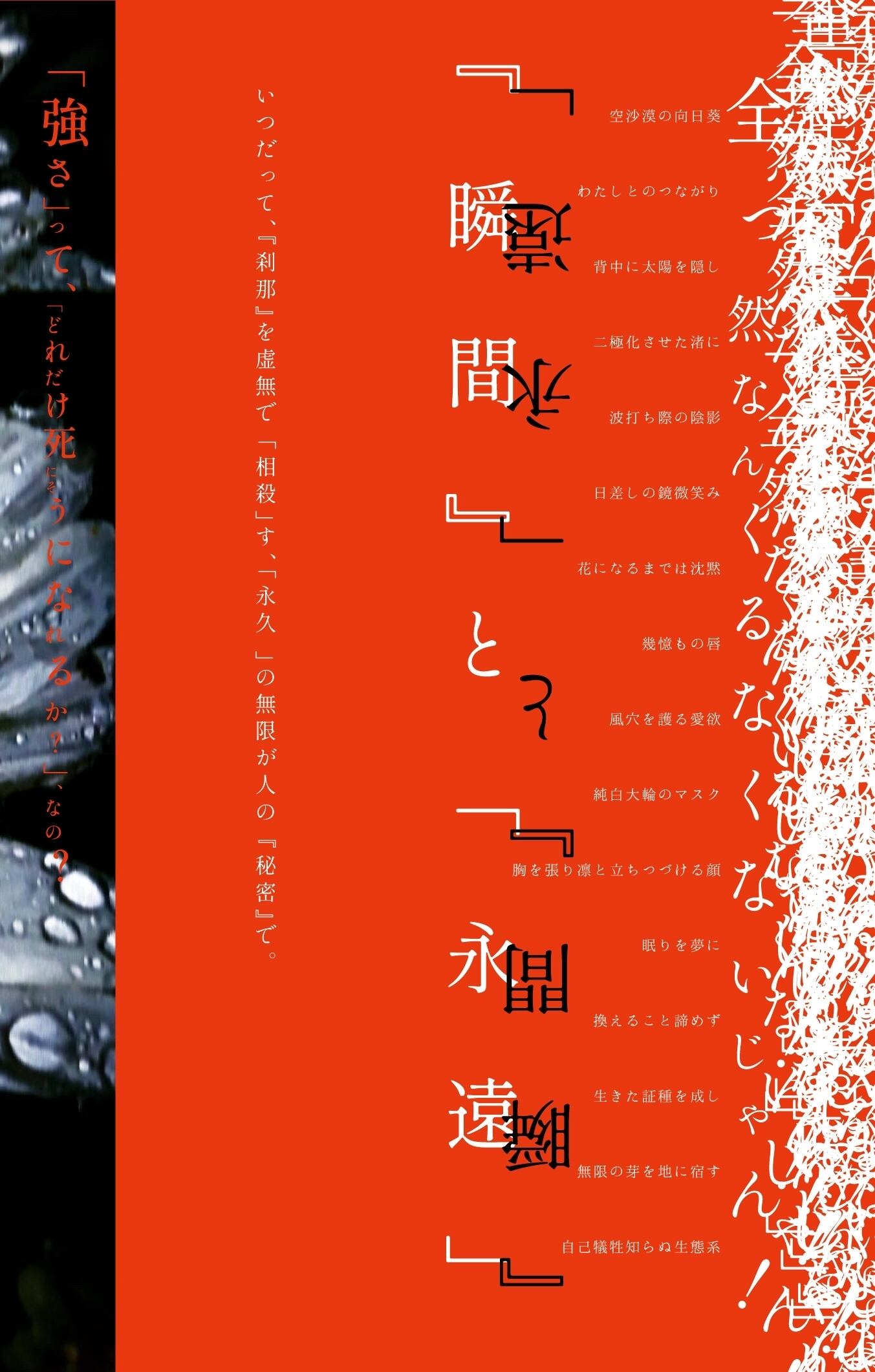 「閉じ込められた雫の中の恋の私の、震度6強/外界の、透明な震えだけであなたに伝える愛は震度1弱未満」